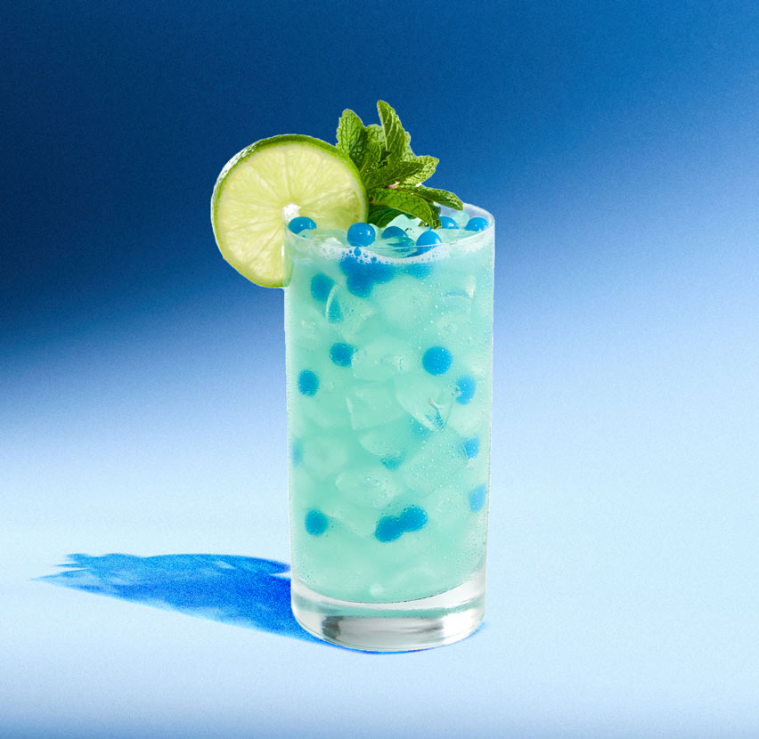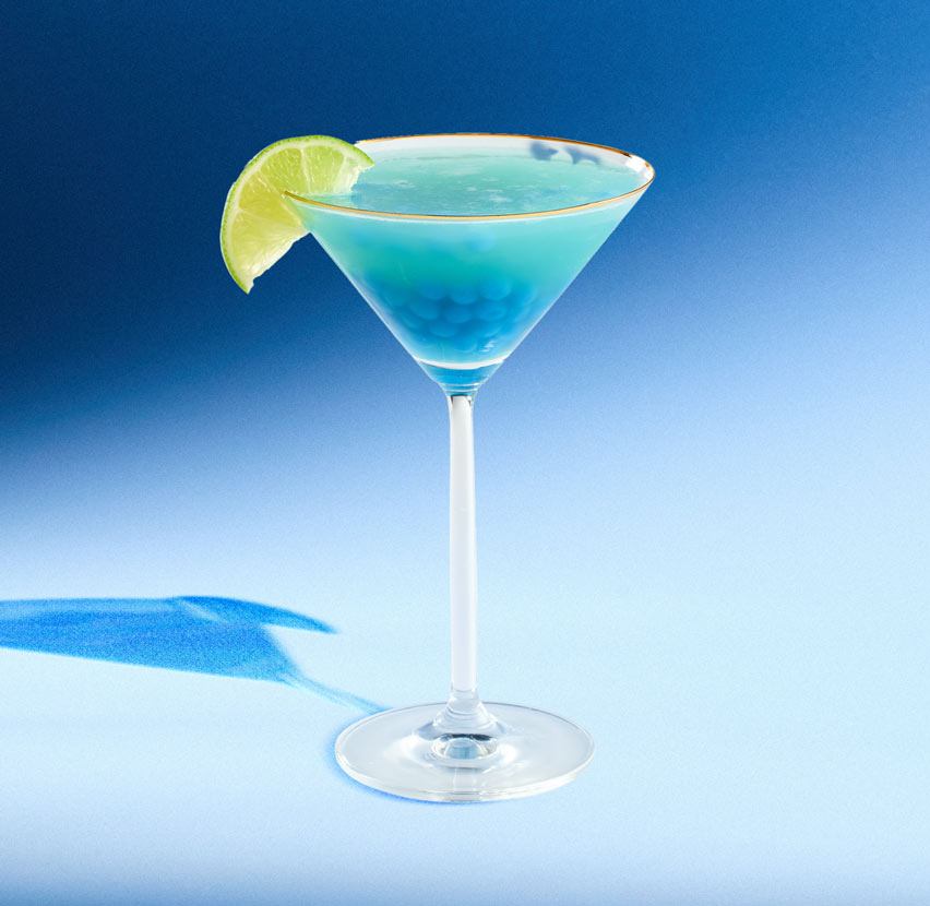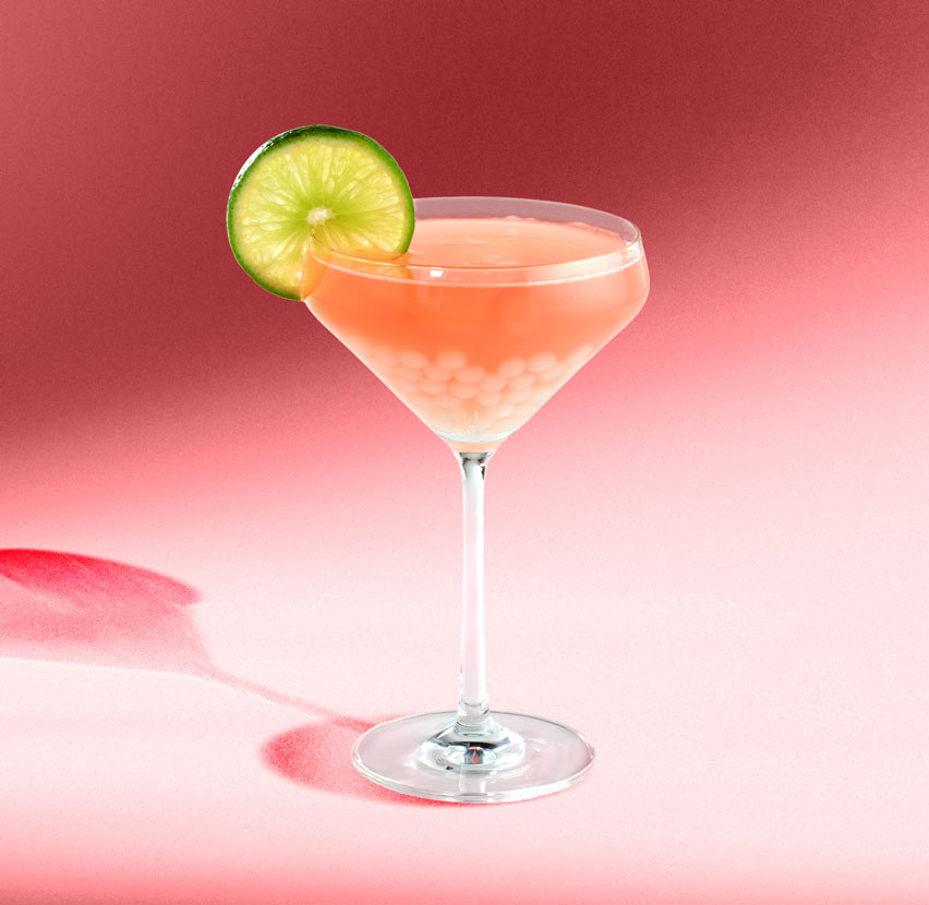 Method:Shake over ice. Strain into a martini glass. Garnish by adding 1 serving Boba POPS into the glass and a lime wedge.