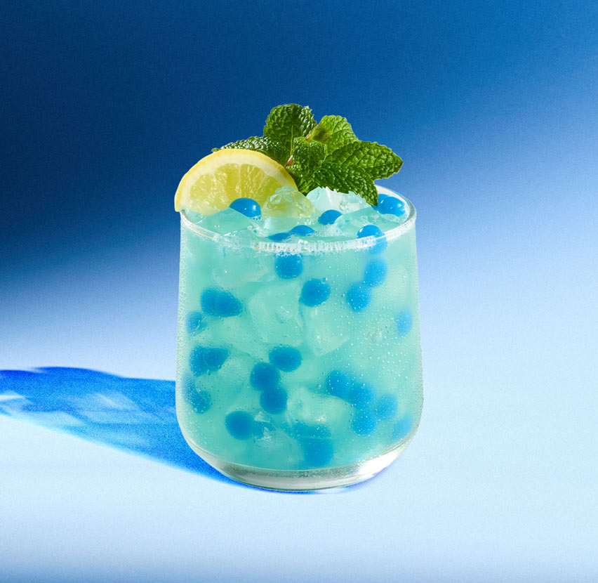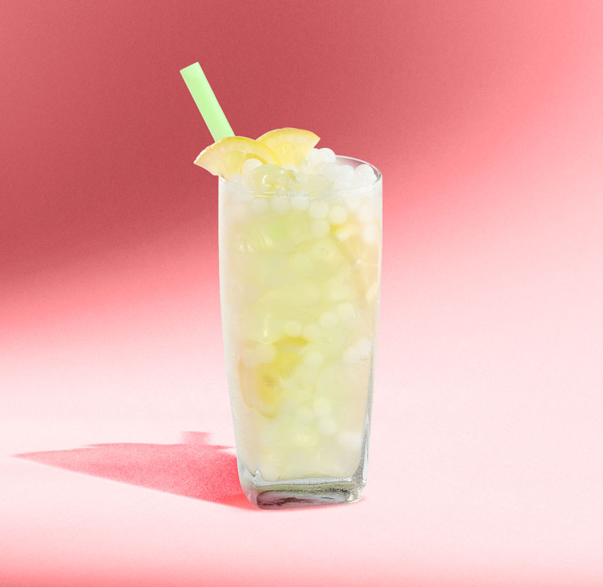 Method:Shake all ingredients except Boba POPS over ice. Strain into a tall rocks glass over fresh ice. Garnish with 1 serving Boba POPS and a lemon wedge.