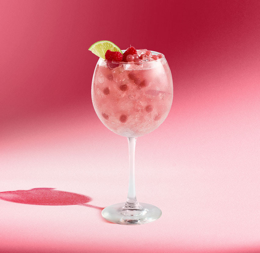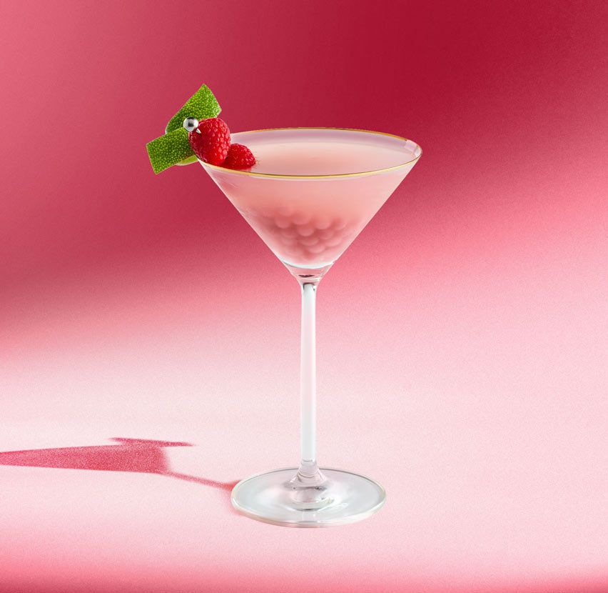 Method: Shake all ingredients (except Boba POPS) over ice. Strain into a martini glass. Garnish with 2 oz Boba POPS, a raspberry skewer, and a lime twist.