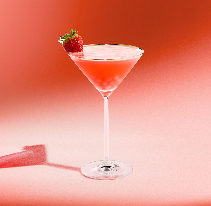 Method:Shake vodka and Boba POPS Juice over ice. Strain into a martini glass. Garnish with 1 serving Strawberry Boba POPS dropped in the martini glass and an upward cut strawberry.